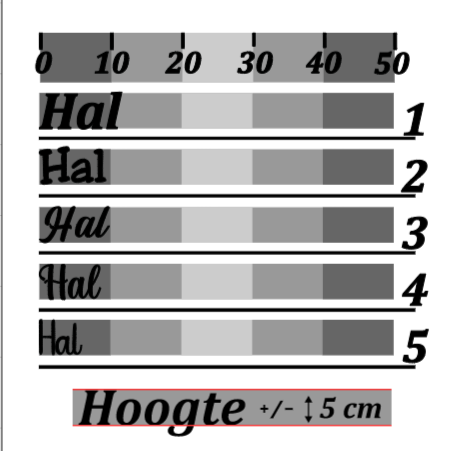 De teksten hebben per lettertype dezelfde lettergrootte zodat ze goed te combineren zijn.